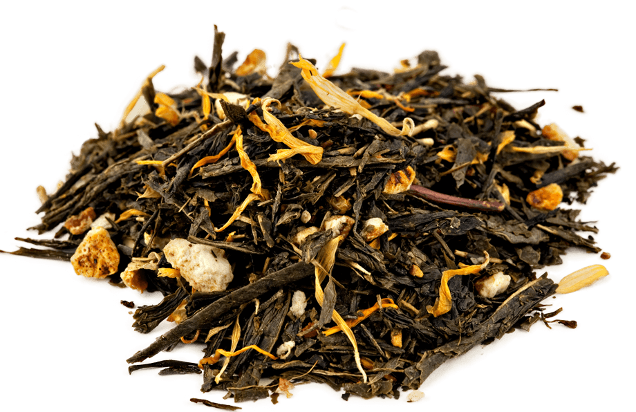 Ingredients: organic and Fair Trade Certified Chinese green tea, organic orange peel, organic ginger root, organic calendula petals and natural orange and ginger flavors
